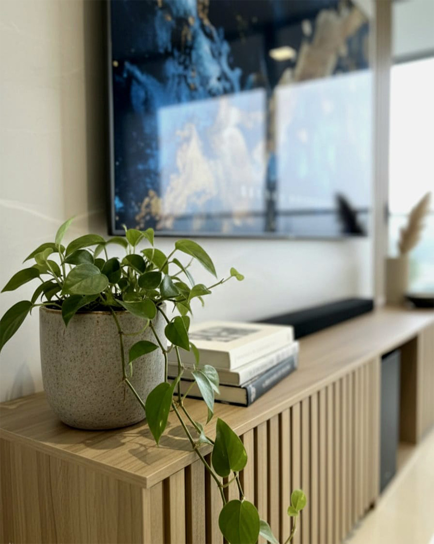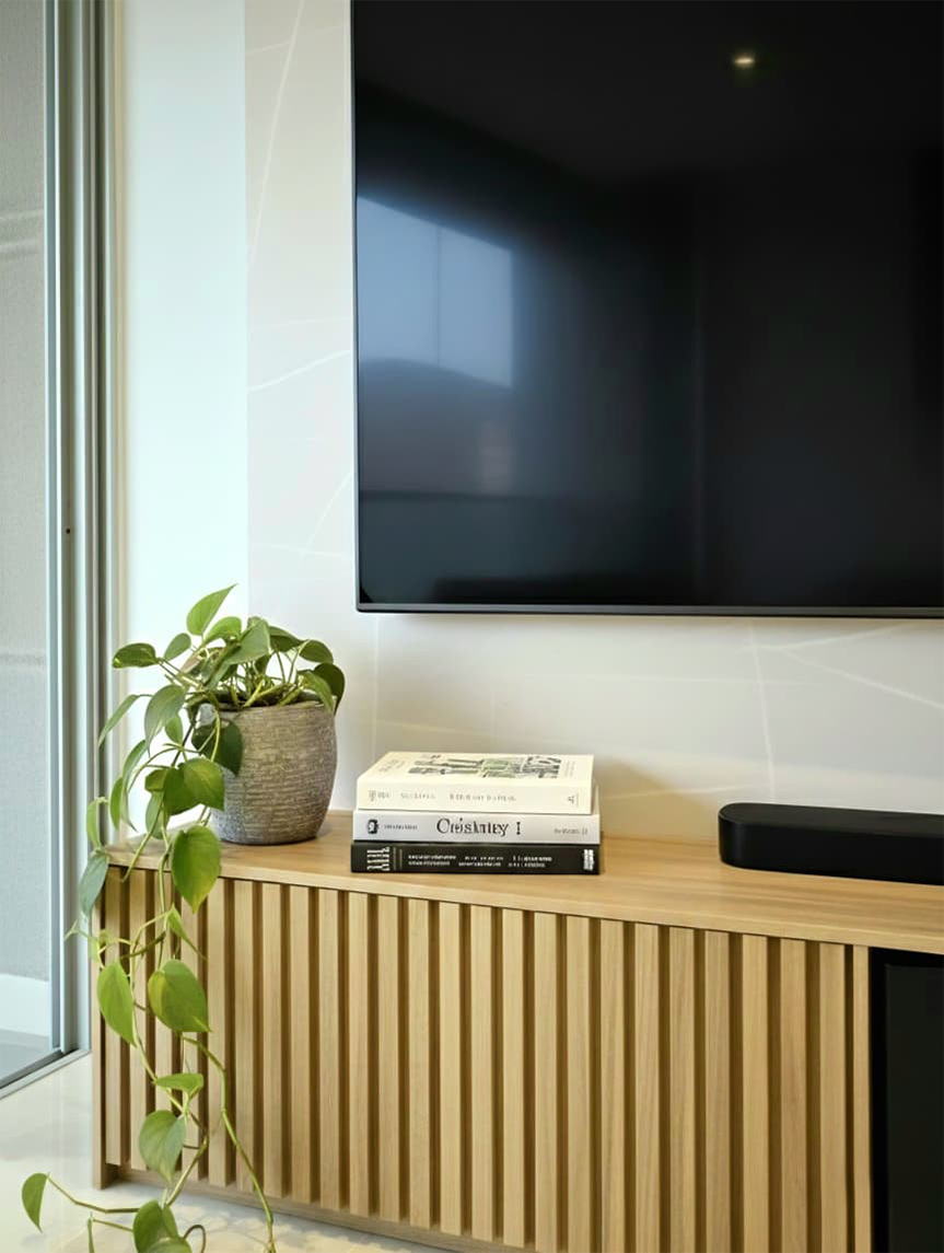 En este proyecto se buscó transformar el espacio a través de materiales naturales, iluminación cálida y una composición limpia que prioriza la funcionalidad sin perder estética. La madera, las texturas verticales y la integración de vegetación generan una sensación de calma y modernidad atemporal.